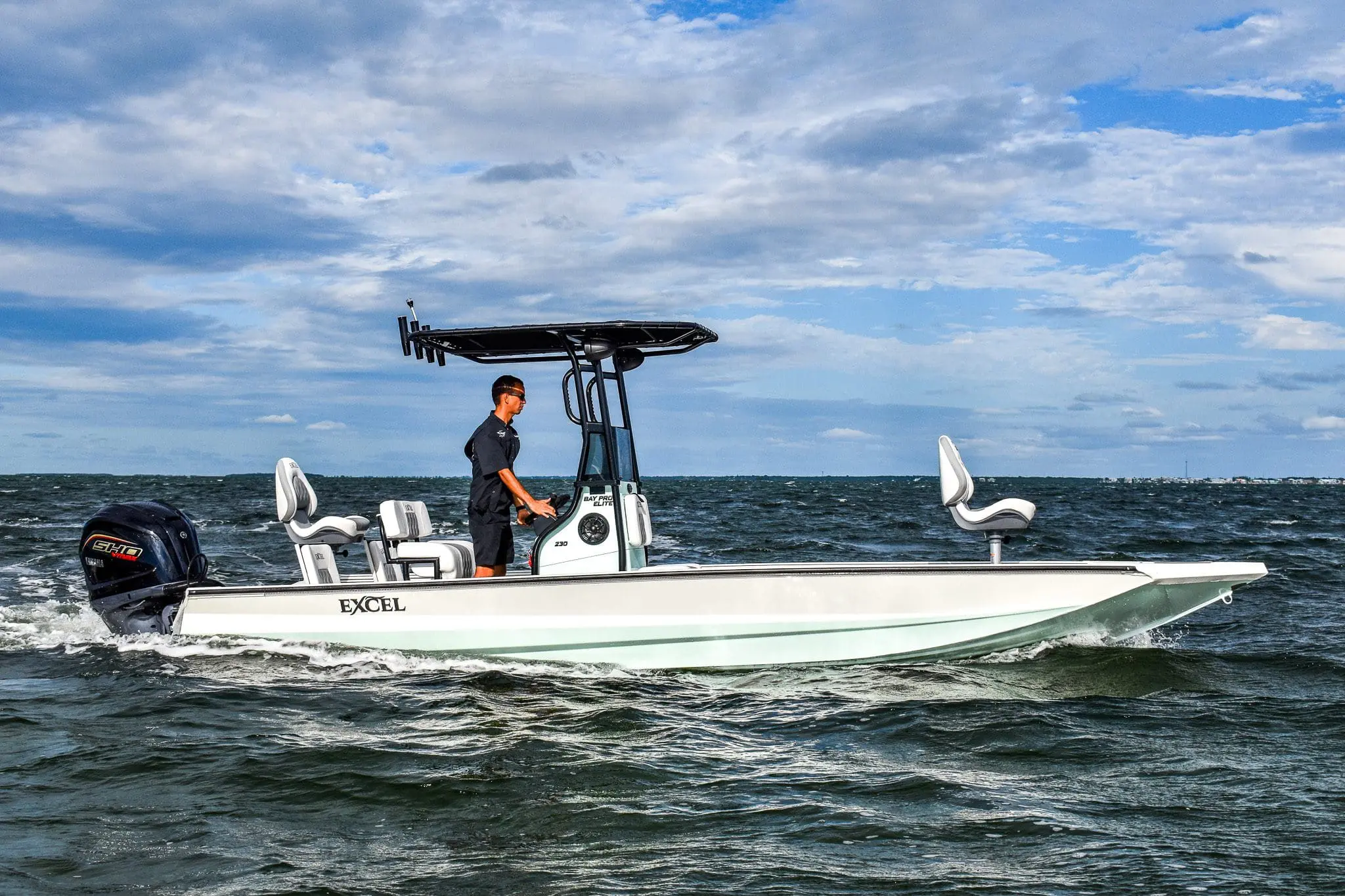 Whether you run southern bays or midwest lakes and rivers, our bay boat can do it all. Our Excel Bay Pro has a great layout, a spacious front and rear deck, plenty of seating, ample storage and lots of room to easily move around. This exceptional bay boat will never disappoint.