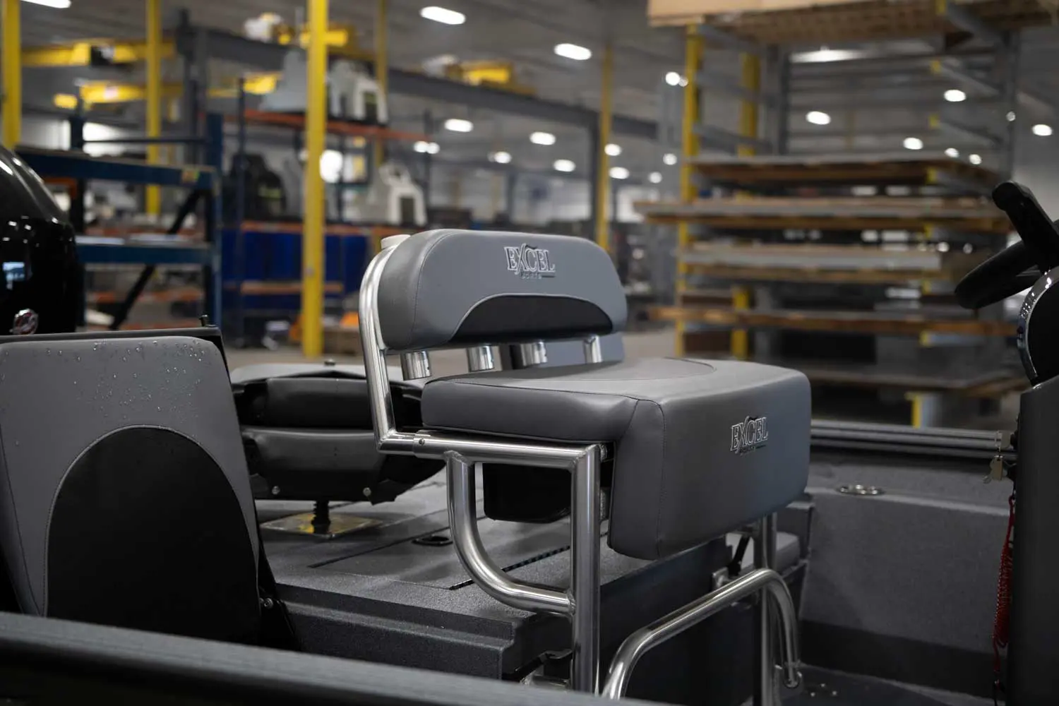 Plus, check out the cooler, the lean post with fold down step, vertical rod holders on the back rest and hold-on handle in front of the jump seat. Although, you probably won’t need them since this is the most comfortable ride in the boat.