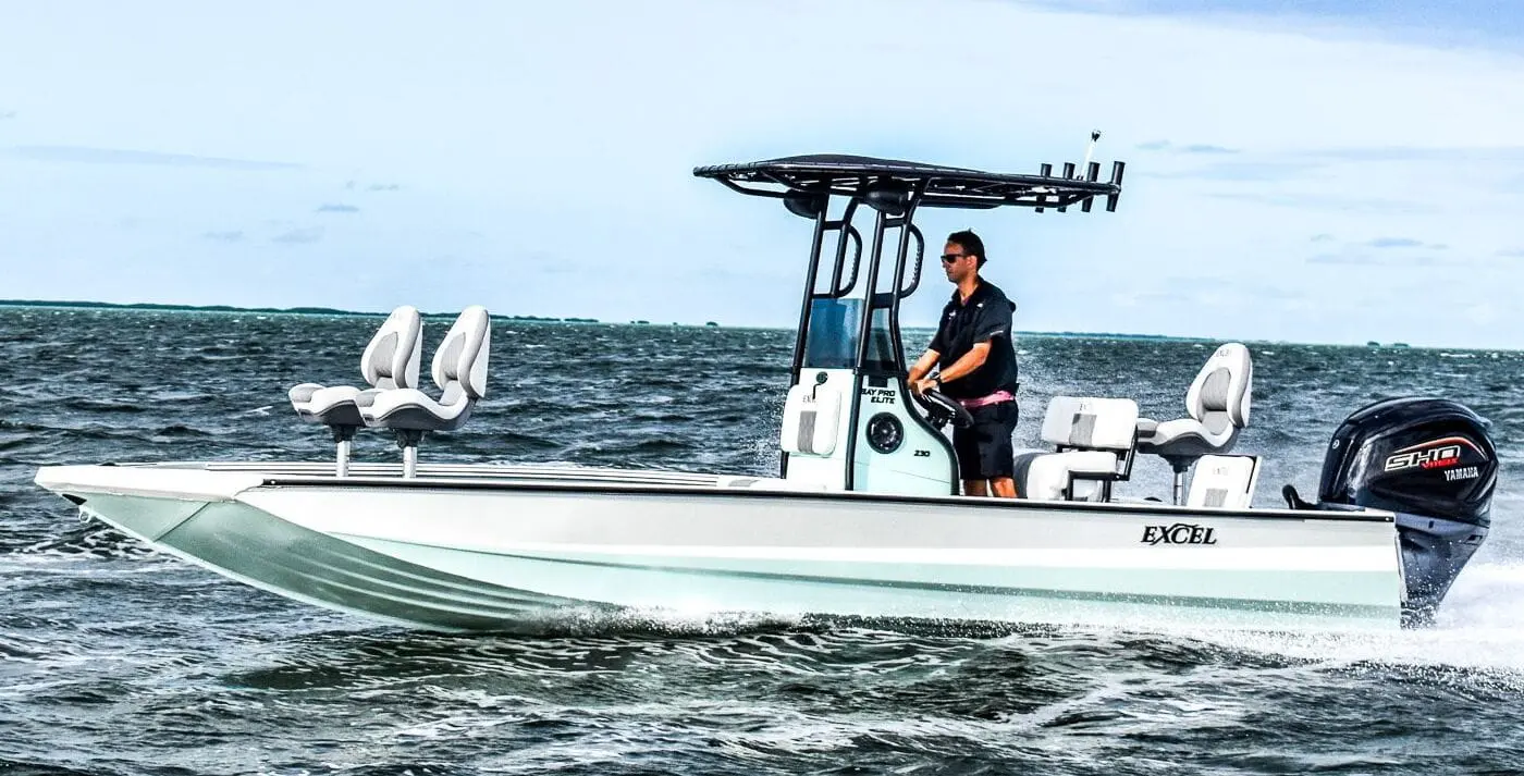Bay Pro Elite 230 MenuOverviewFeatures & OptionsGalleryDownload FlyerFind A Dealer Bay Pro Elite 230 GalleryFind An Excel Boat Near YouOur extensive network of dealers are available to help find the right boat for you. Upgrade to an Excel Boat today. Find A Dealer