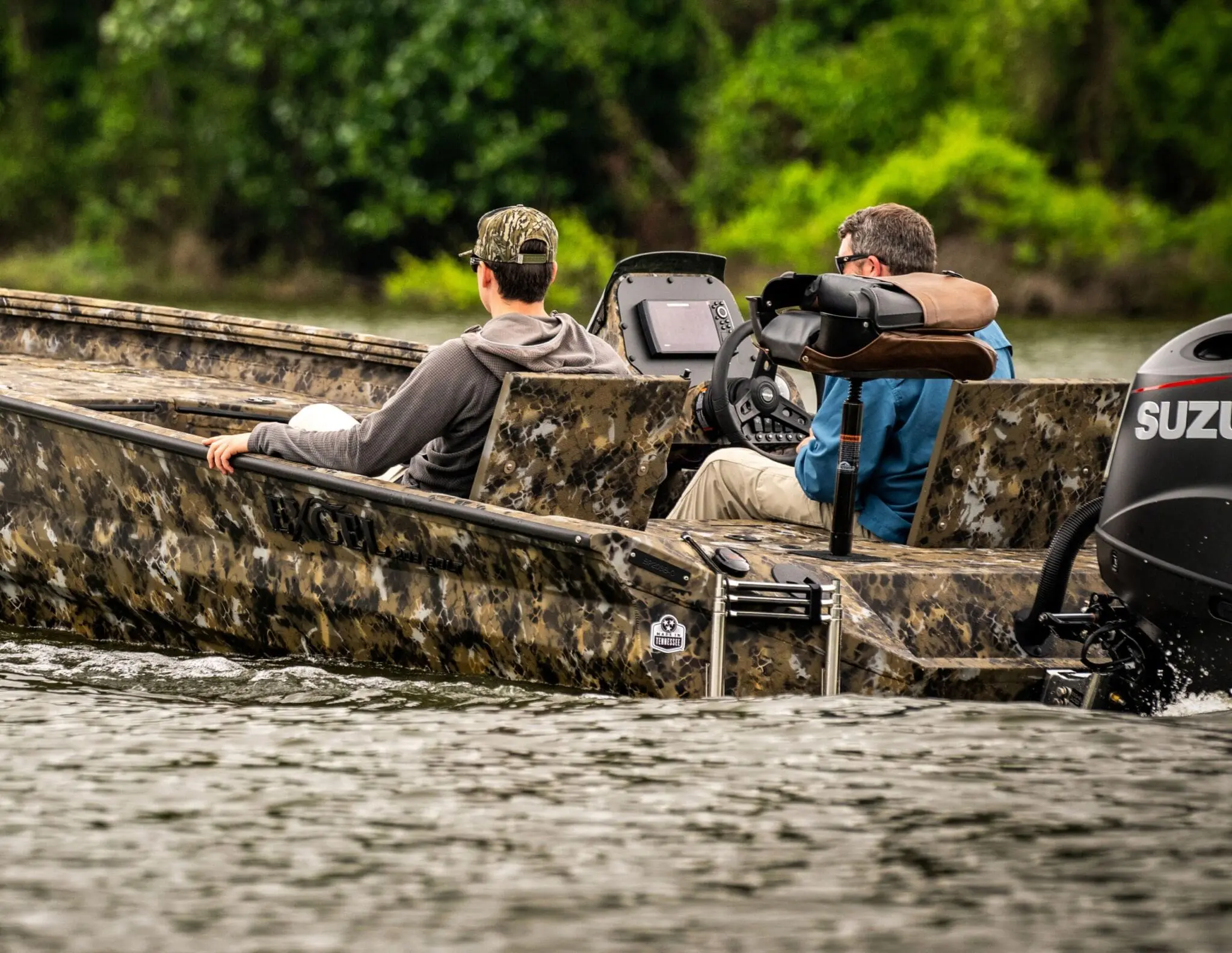 The pad lift hull with its many contours is the only .160 thick hull in the industry – making our boats the toughest. Simply said, the pad hull gets on step quickly and once running, the boat rides on the center low-friction flat surface for exceptional speed, while the outside reverse chines trap water for a dry ride and superb handling.