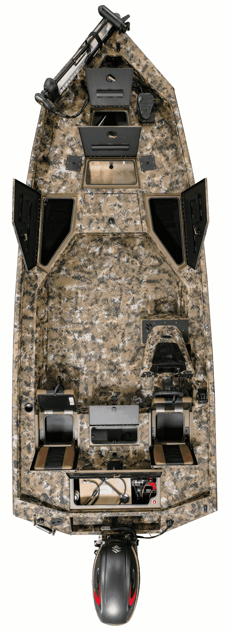 The Bolt isn’t a one-size-fits-all boat. It comes in two champion sizes: the 18′ and the 20′. This lets you choose the perfect fishing partner for your needs. No matter which size you pick, you won’t be cramped on customization. The Bolt offers a bounty of options to outfit your vessel for victory. Rig it up with a top-of-the-line trolling motor for quiet stalking or a fish finder with crystal-clear views to locate hidden honey holes. And there’s ample storage to keep all your essential rods, reels, tackle boxes, and nets organized and within arm’s reach.