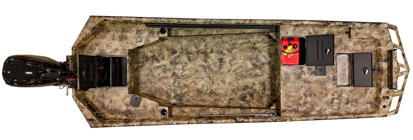 The expansive front deck is made to fit your needs seamlessly. Gear up for a limit-smashing waterfowl hunt with ample space for decoys, blinds, and calls. Or, transform the deck into a fisherman’s paradise with room to cast comfortably and secure your catch. This adaptable adventurer lets you seamlessly switch between passions, all on one incredible platform.