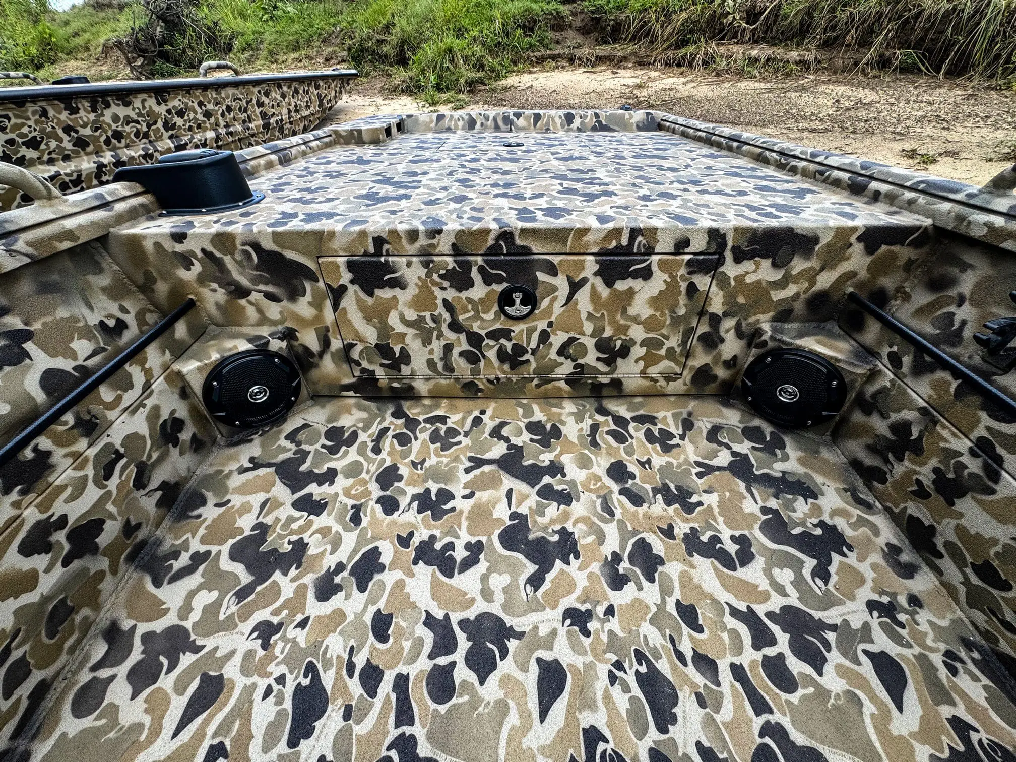 The expansive front deck is made to fit your needs seamlessly. Gear up for a limit-smashing waterfowl hunt with ample space for decoys, blinds, and calls. Or, transform the deck into a fisherman’s paradise with room to cast comfortably and secure your catch. This adaptable adventurer lets you seamlessly switch between passions, all on one incredible platform.