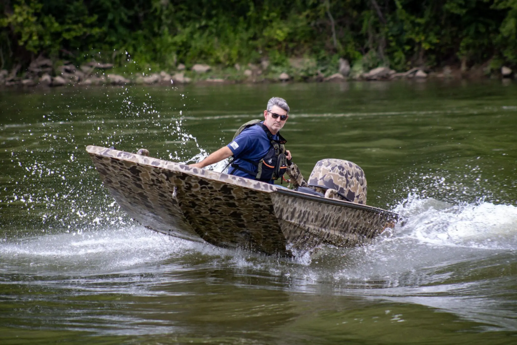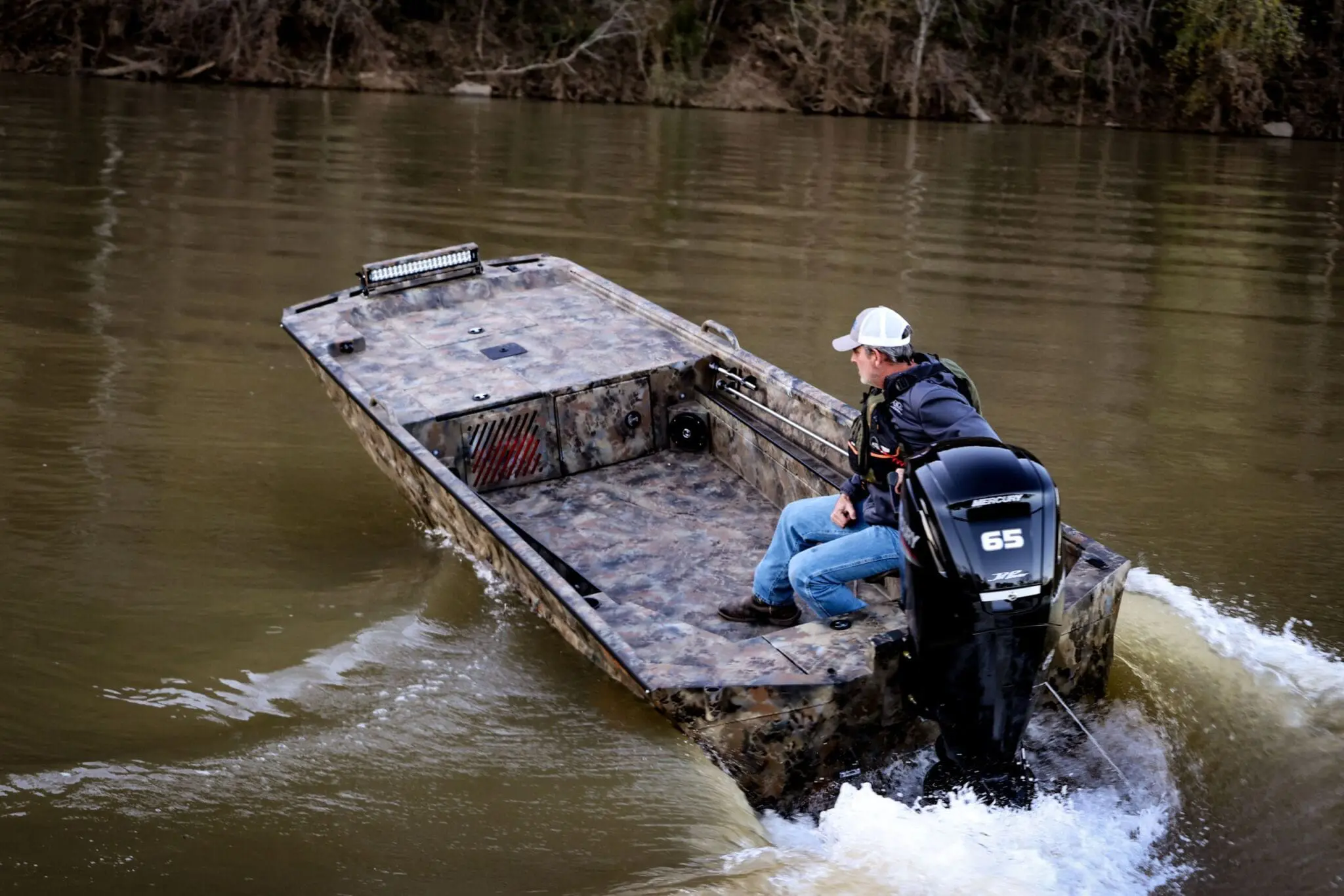 It is one of our toughest and lightest boat packages designed to run very shallow water, and particulary the extreme backwater marshes and timber of Arkansas. As you can imagine, it works well in all parts of the country.