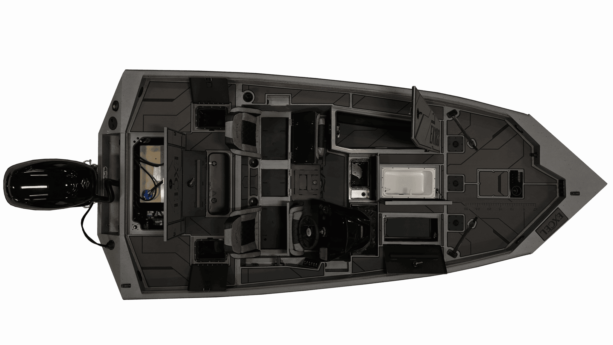 The EX Series offers a well-aerated livewell which is a must for keeping your baitfish healthy, important for targeting both bass and Crappie. Additionally, ample storage throughout the boat is crucial to accommodate the variety of rods, reels, tackle boxes and nets you’ll need for targeting different species.