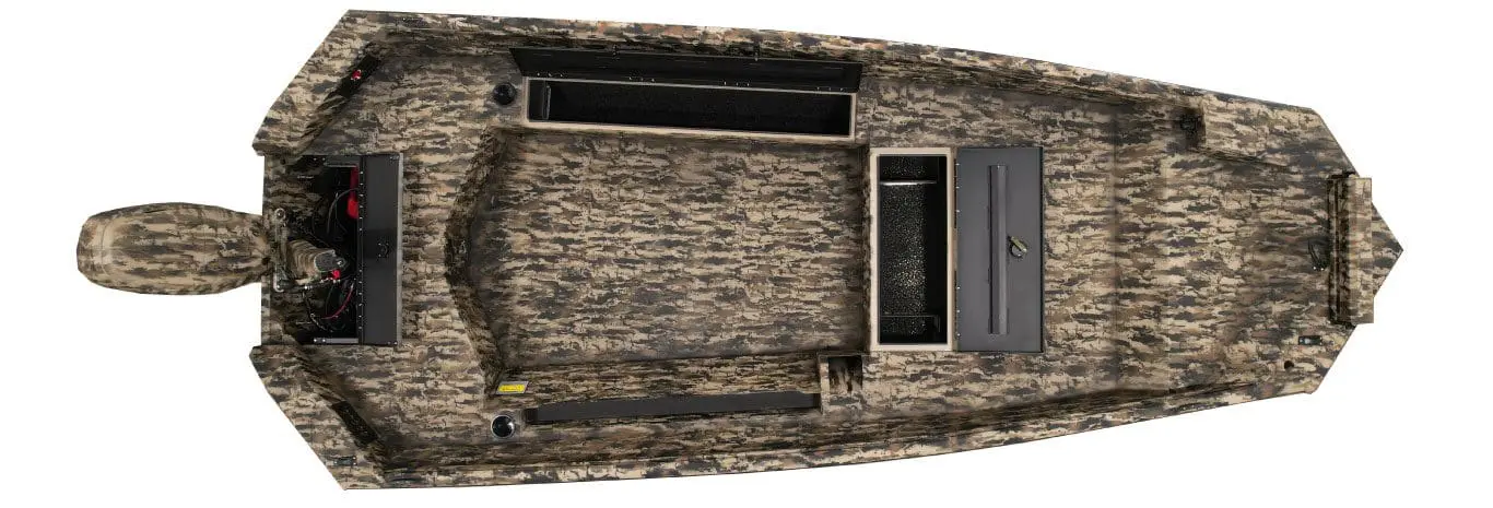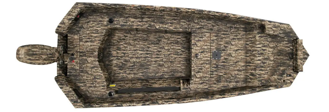 Whether fishing for bass, hunting timber or a family day on the lake; the River Warrior does it all. The 16’ & 17′ lengths and wide 80” beam provides plenty of elbow room for fishing partners, decoys, gear and kids. Rated for a 60HP outboard; this boat will get you there fast.
