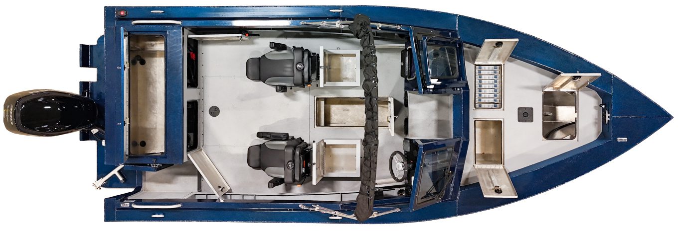 Catfishing often involves navigating rough waters, strong currents, and potentially snags. A stable hull with a strong construction is crucial for safety and handling. The Stormcat’s deep V-hull design and robust .250 ga aluminum hull and .160 ga aluminum sides will get you there and back, day in and day out.