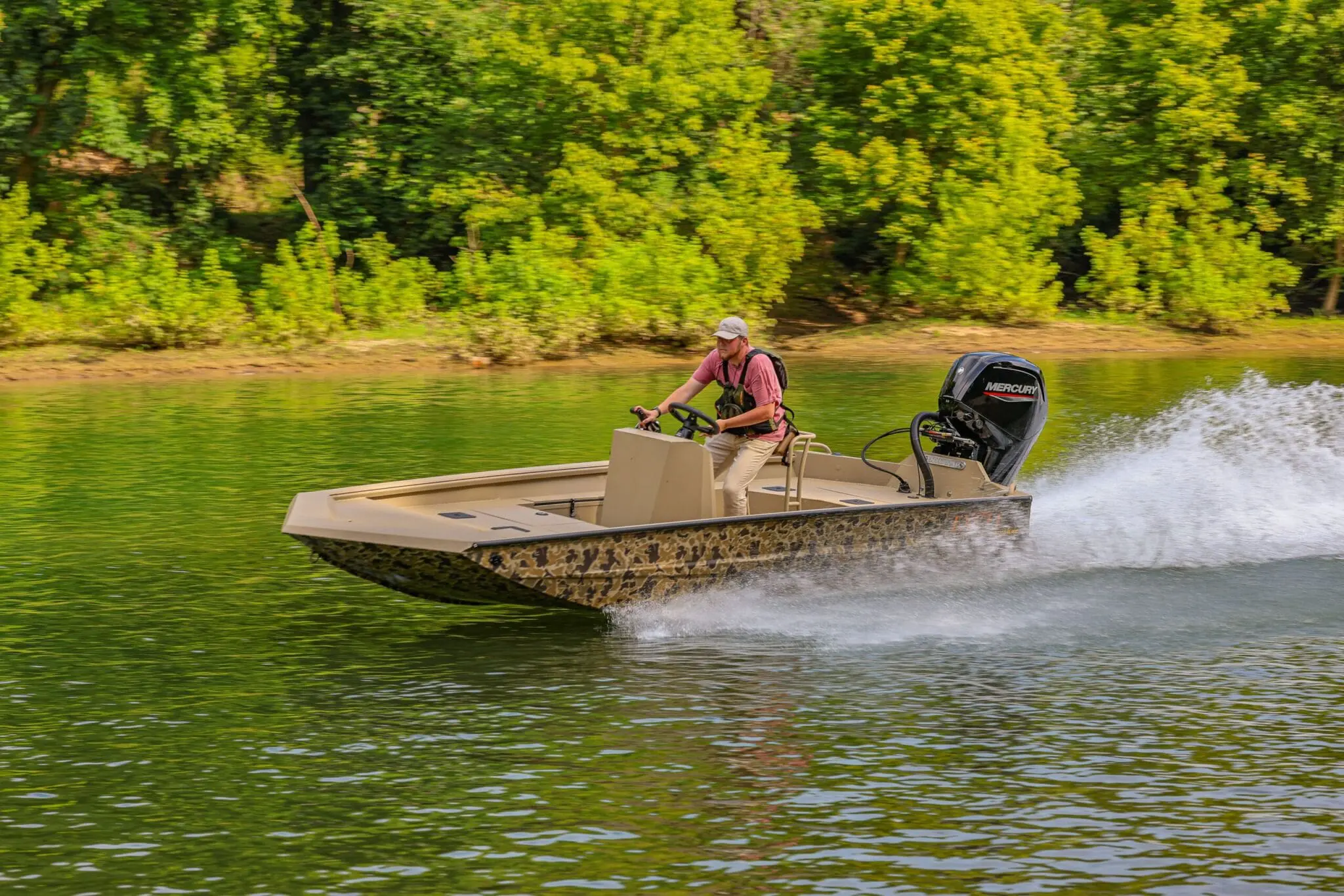The Switchblade custom triple taper chine works equally as well with an Outboard, Mud Buddy or Jet Pump (order custom 27″ transom).